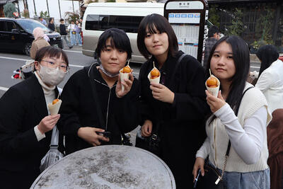 今朝は「半袖でもOK!」という快晴に恵まれ、生徒たちはタクシーに分乗し、インバウンドでにぎわう古都へ繰り出しました。